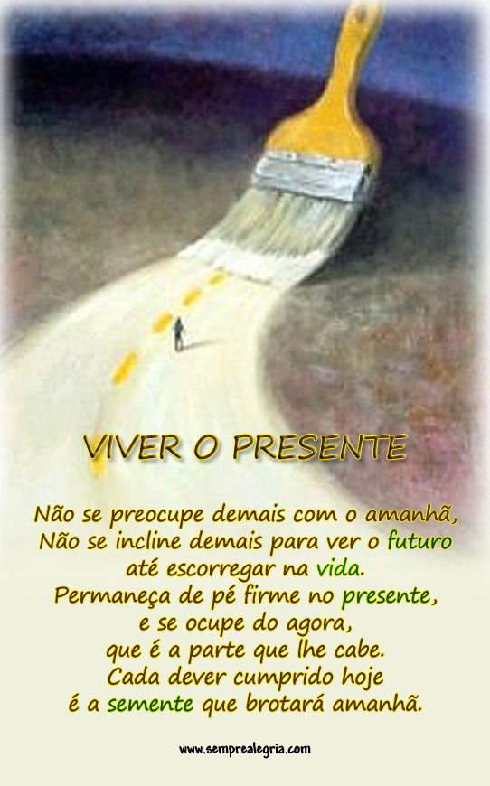 - não vaçe a pena passarmos o tempo preocupados com o futuro, porque isso só nos vai distrair do que estamos a viver, a experienciar agora, e, como na maioria das profecias, acabaremos por realizar os nossos piores receiso só porque estamos sintonizados para isso.